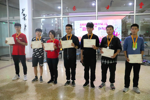 第十届“新生杯”乒乓球比赛。体育部部长侯柏祥担任本次领队,高子璇、章新年、张涛、王磊、陈嵩桦、薛许蓉、任好天作为队员参与比赛,许梦飞、尤慧担任替补。