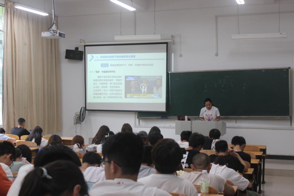 讲座伊始,董娜副教授从美国将疫情起源“甩锅”给中国,深化对华“技术冷战”,限制在美中国记者,“后疫情时代”的中美关系等方面讲述了新冠肺炎疫情背景下中美关系的大变局现状。从“战狼外交”之名从何而来进行分析,强调了需杜绝“战狼外交”标签的重要性。董娜副教授又分别从中欧关系:合作迎来发展新契机、中非关系:同心合力友好合作、中印关系:合作共赢三个方面介绍了中国共产党领导下的中国特色大国外交的内涵与意义。