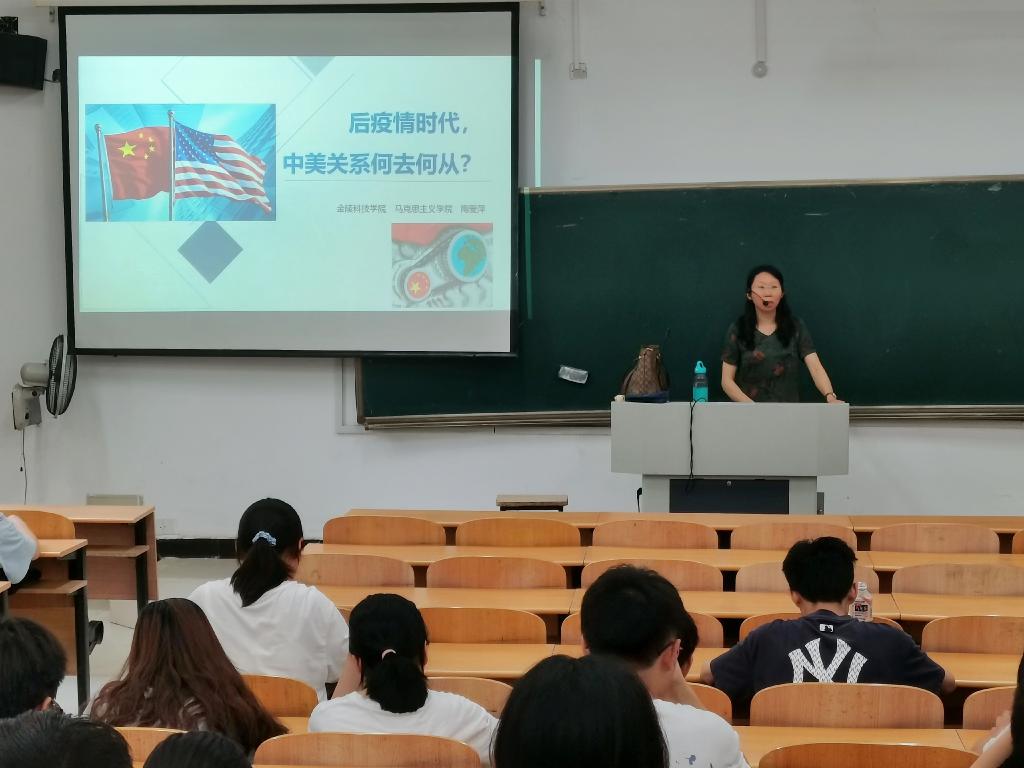 于6月9日下午3:30在3107承办了题为“后疫情时代,中美关系该何去何从?”的主题讲座。本次讲座由马克思主义学院陶爱萍老师担任主讲,院学生代表参加。
