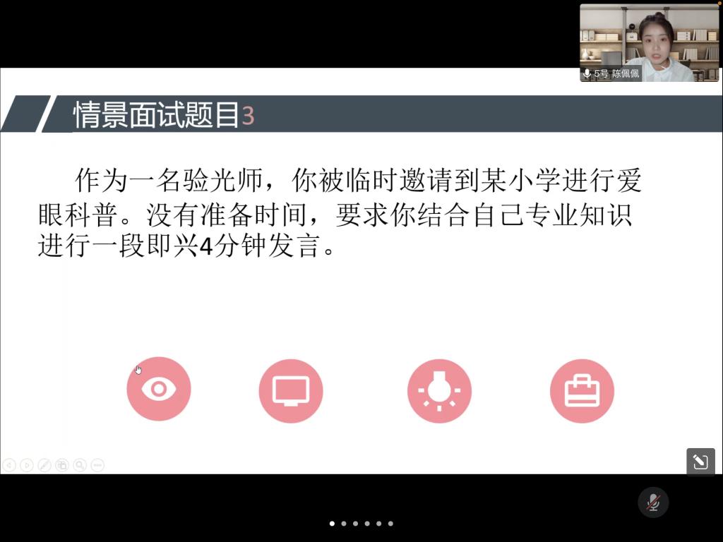 活动伊始,主持人介绍本次活动主旨、评委嘉宾及活动流程,本次简历大赛线上答辩会分为自我介绍、情景模拟问答、评委提问三个环节。参与活动的8位选手充分准备,沉着作答,以扎实的知识储备和突出的专业素养,向评委及观众们展示了青春阳光的学生风貌和积极进取的求职态度,赢得了评委老师们的一致认可。