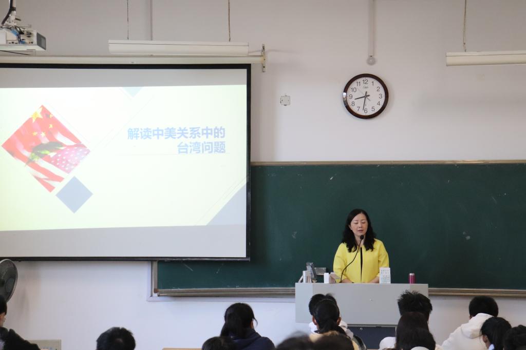于3104教室举办形势与政策讲座:解读中美关系中的台湾问题,马克思主义学院尹剑老师作为本次讲座的主讲为大家呈现了精彩的分析与研判,22级部分新生参加。