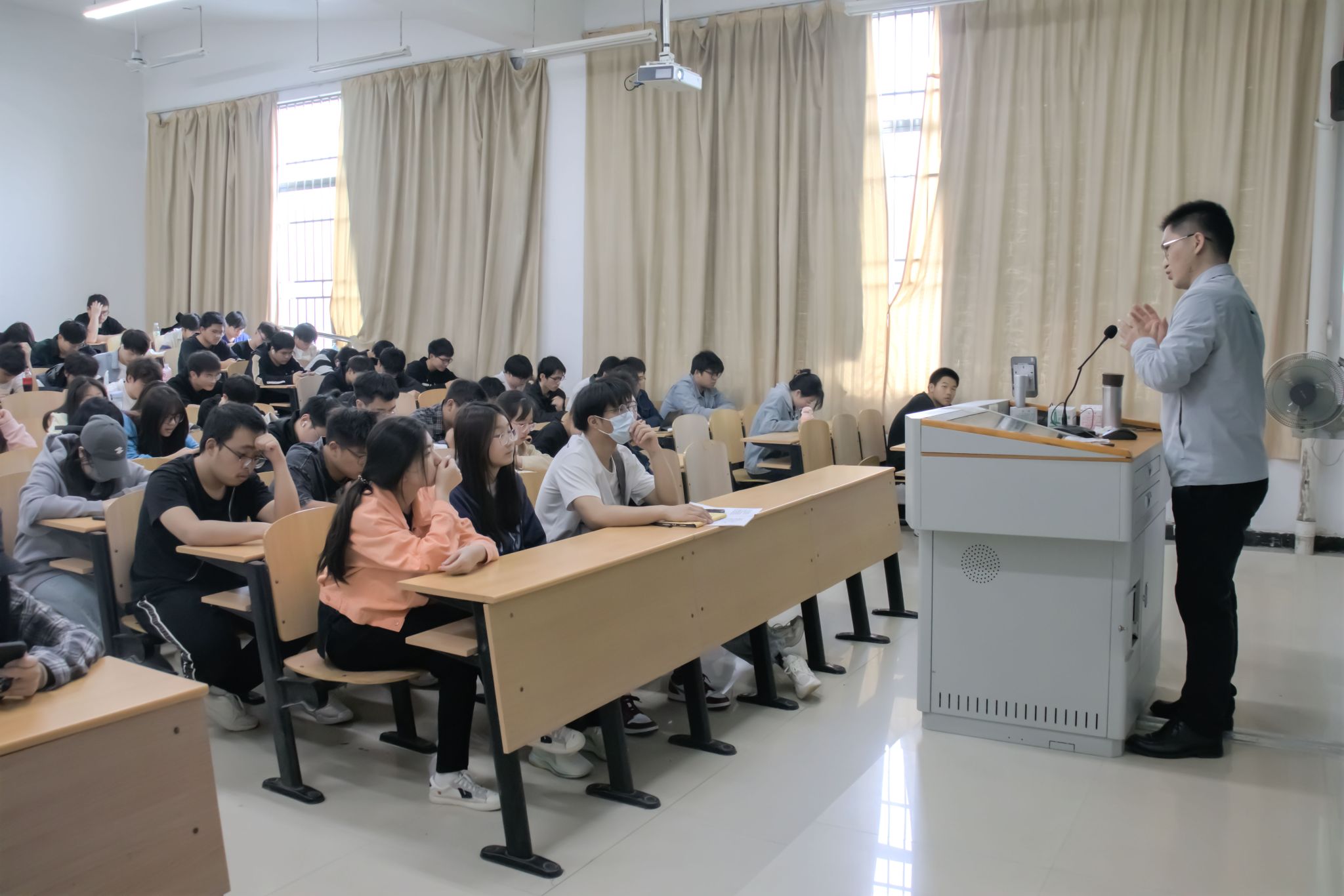 于4月15日上午在3102、3103教室开展了两场“形式与政策”讲座,马克思主义学院副教授朱林老师担任主讲,全院学生积极参与。