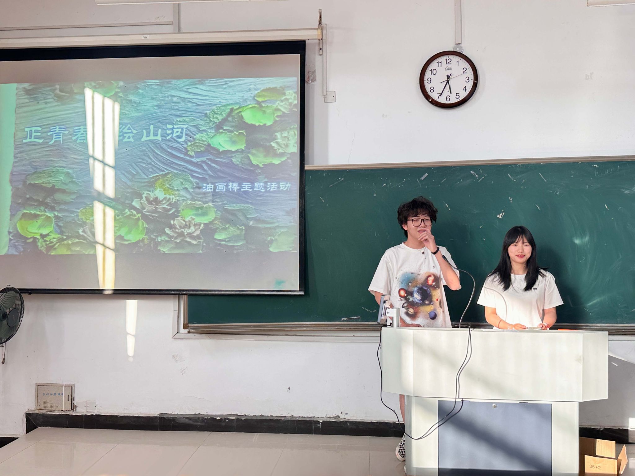 举办了主题为“正青春,绘山河”的油画棒绘画比赛,引导同学们通过绘画的形式展现出自己心目中的祖国。