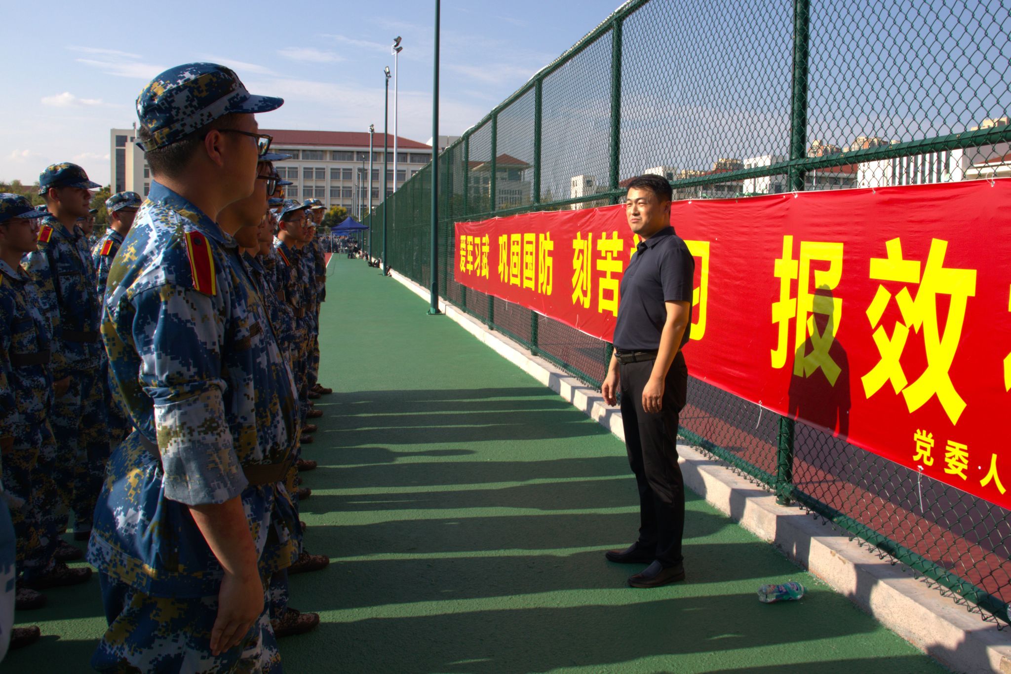 此次军训慰问充分体现了学院领导对新生的高度重视,拉近了师生之间的距离,让同学们感受到学院的关怀与温暖,极大地提升了训练热情。希望同学们能以更饱满的热情、更昂扬的斗志,圆满完成军训任务,展现材料学子的青春风采!