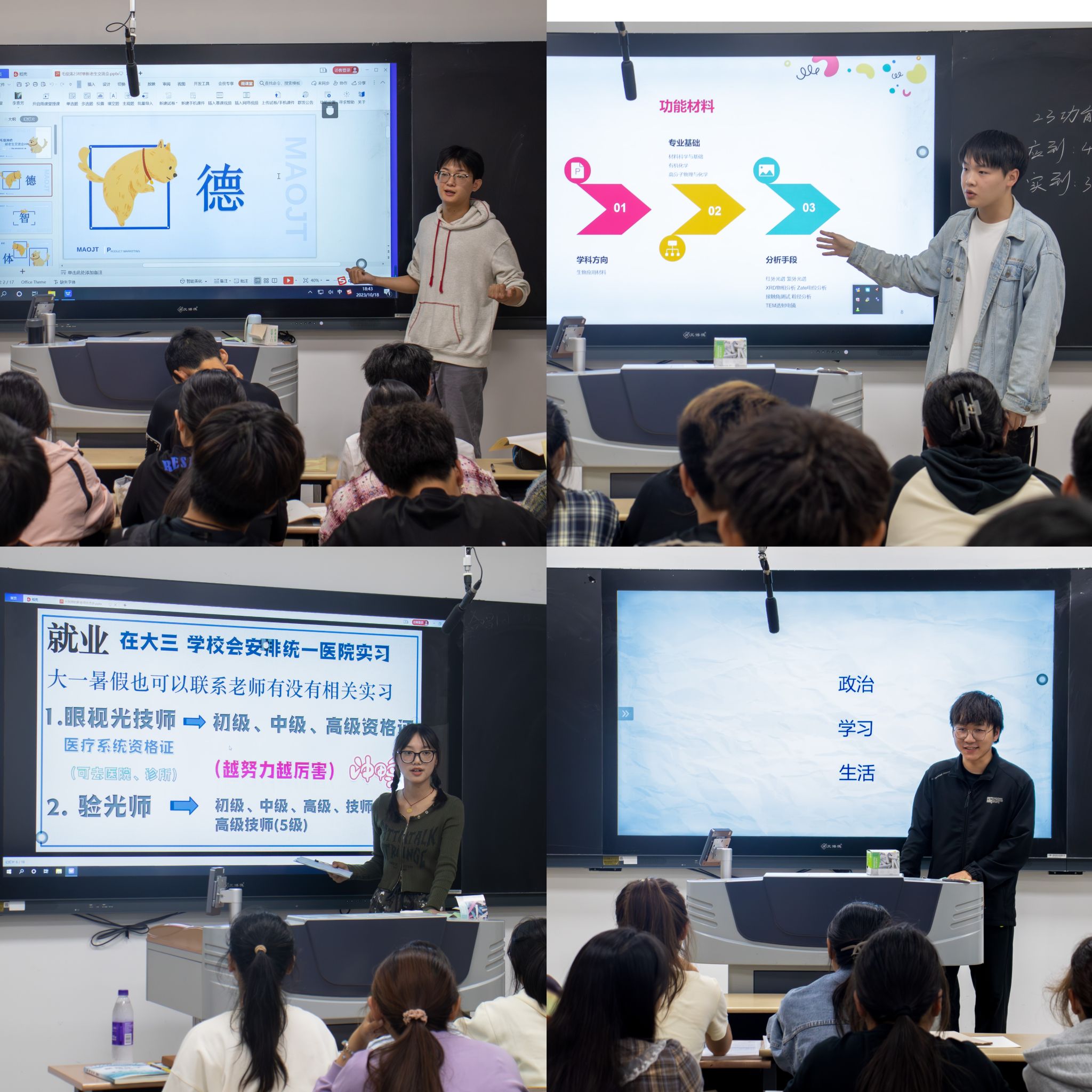 分别于10月18日、19日开展了新老生交流会活动,并邀请了各个专业大二、大三优秀的学长学姐与大一新生进行面对面交流。