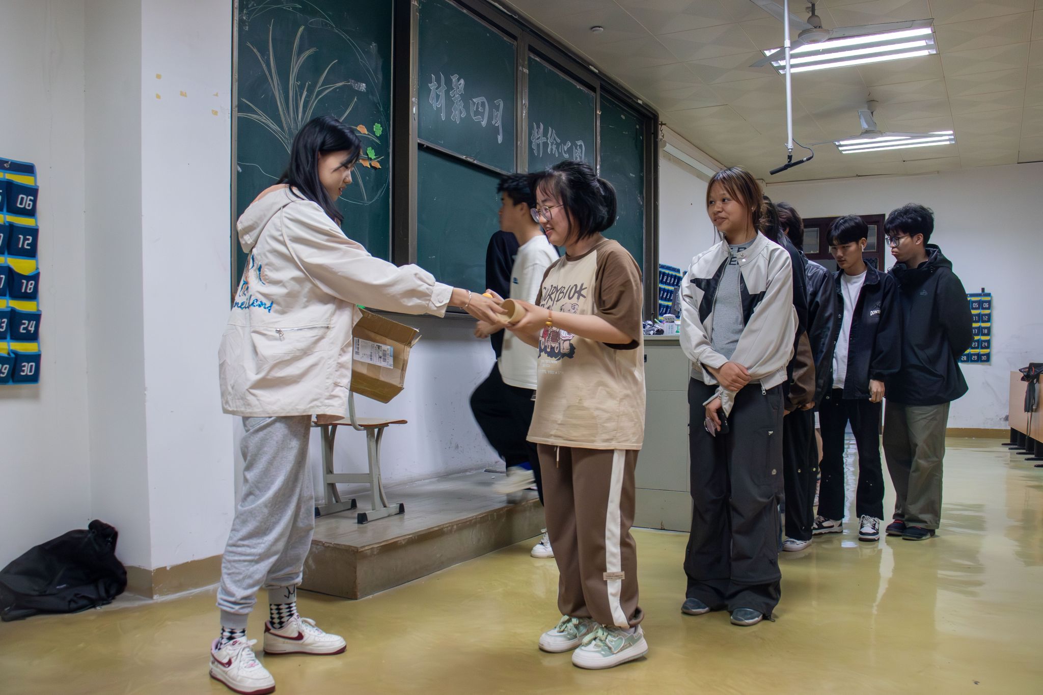 活动伊始,每位参与同学都领取到一张树叶型的便签纸。大家纷纷拿起笔,在便签纸上写下自己的祝福语句或美好愿望。有的写下了对家人的思念与感激,有的写下了对未来的憧憬与期待,还有的写下了对朋友的真挚祝福……这些满载心意的“树叶”被小心翼翼地贴到了大树干上。随着一片片“树叶”的加入,让原本空白的树干逐渐变得枝繁叶茂,仿佛一棵充满生命力的心灵之树在大家的共同努力下焕发出勃勃生机。接着,同学们参加心理知识竞赛答题,答对题目后还有机会赢取投掷机会。地上摆放着整齐划一的纸杯,每个纸杯下都藏着不同奖品,当乒乓球准确地落入纸杯中时,现场便会响起阵阵欢呼声。活动现场气氛热烈而温馨,大家在轻松愉快的氛围中交流着彼此的心得与感受。