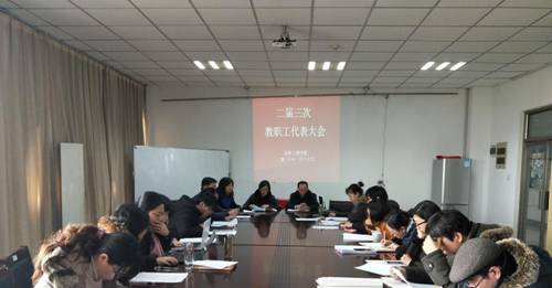 在工科楼A503召开二届三次教职工代表大会,学院党政领导和全体教工参加会议,会议由党总支副书记戴典芬主持。