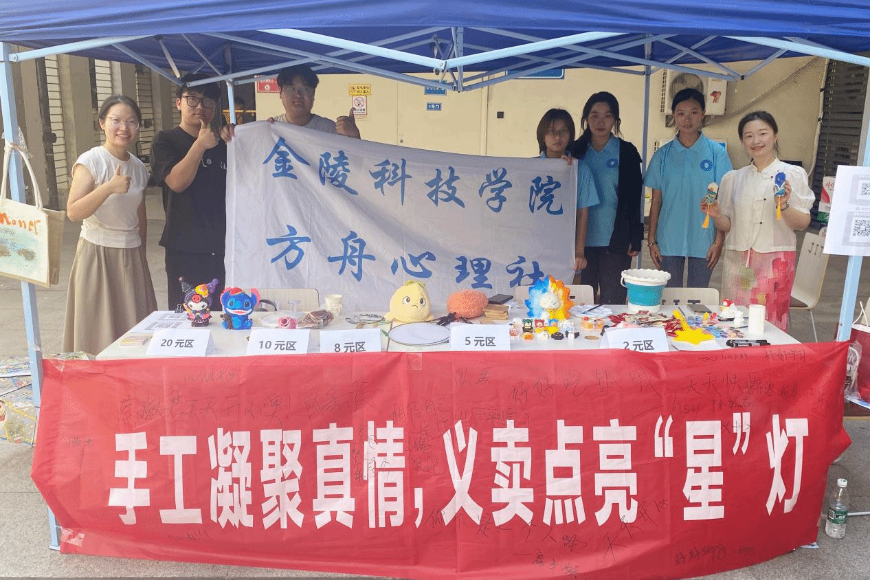 活动前期,我院“方舟”心理社成员、暑期实践“星光护航”志愿队成员进行了手工制作,包括掐丝珐琅杯垫与书签、石膏娃娃、漆扇等。“同学你好,义卖了解一下”“小小义卖,大大爱心”“走过路过,不要错过”……义卖现场的吆喝声此起彼伏,志愿者们都化身“摊主”,向来往“顾客”介绍商品,大家纷纷驻足选购,并在横幅上签名留念,或在贺卡上写下祝福送到小朋友们手中。9月2日,我院师生带着精心挑选的文具奔赴秦淮特殊教育学校参加开学典礼,向孩子们表达了亲切的关怀和新学期真挚的祝福。