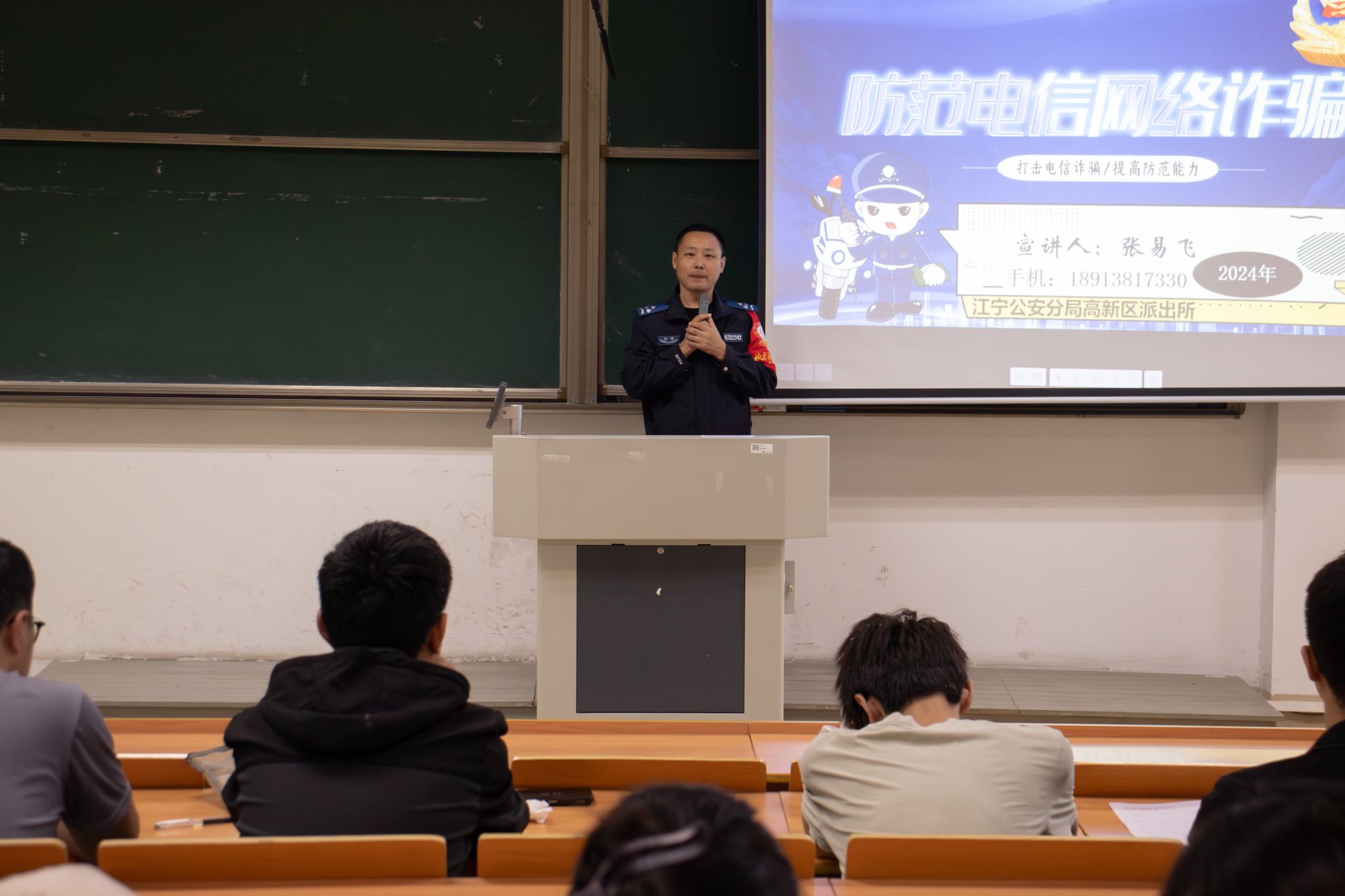 特邀江宁公安分局高新区派出所的张易飞警官于10月14日至18日分批次对全院学生开展了反诈宣讲会,我院学子积极参加宣讲会,认真聆听与学习。