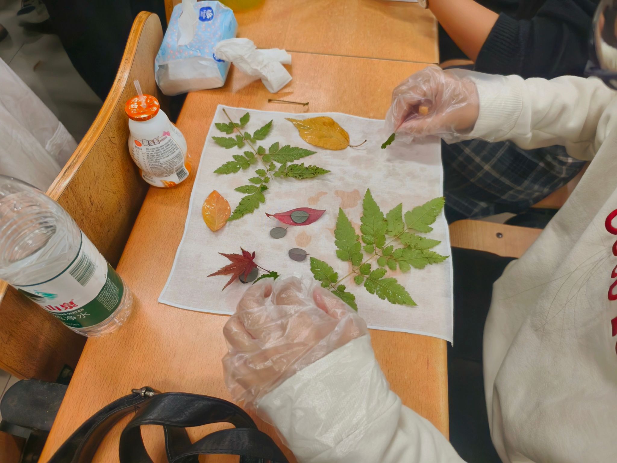 “草色锤染身上衣,映红犹闻彩花香。”本次活动不仅让同学们感受到了植物拓染与现代创意的美学融合,还弘扬了中国非遗文化的独特魅力,激发了同学们对中华传统文化的认同感和自豪感,提升了发现美、创造美的能力。