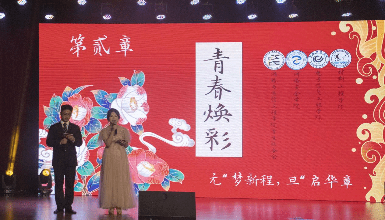 、电子信息工程学院、网络与通信工程学院、网络安全学院联办的以“‘元’梦新程,‘旦’启华章”为主题的元旦晚会在大学生活动中心隆重举行。联办各学院院领导、辅导员、教师代表及1200余名学生欢聚一堂,共同迎接充满希望与梦想的新一年。