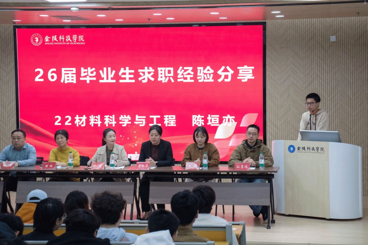 随后,22材料工程与科学专业的陈垣亦同学在求职分享中提到“如无专业类奖项优势,可聚焦科研项目及实习经历,打磨简历;要多采纳师长建议,凸显个人亮点;务必紧盯校招,尽早到场与HR深入沟通,以提升初面通过率;复试需吃透简历内容,灵活应对岗位理解、薪资确认等提问;面对模拟环节,可主动承担方案整合汇报工作。展现多维能力”。他以自身签约深圳领益智造为例,鼓励大家即便岗位与专业不完全匹配也可大胆投递,试错成本低,切勿错失机会,同时建议优先选择有明确人才培养计划、具备成长空间的企业。