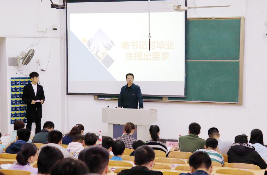 会议伊始,喻书记对同学们提出了三点要求:首先,准确定位自我,有信心面对找工作的挑战。其次,认真研究国家和政府的就业优惠政策,认真研究就业形势和行业特点,有的放矢。最后喻书记希望同学们在找工作时能把握好时间节点,在应聘时学会合理宣传,同时简历也要实事求是。接下来辅导员华岚芳老师从就业信息来源,同学们的主动性等方面分析就业形势,以及目前就业形势对大学生的影响。随后,陈书记对同学们进行了就业指导,希望同学们在寻找工作时宜早不宜迟,做好充分的准备,师生一起努力。