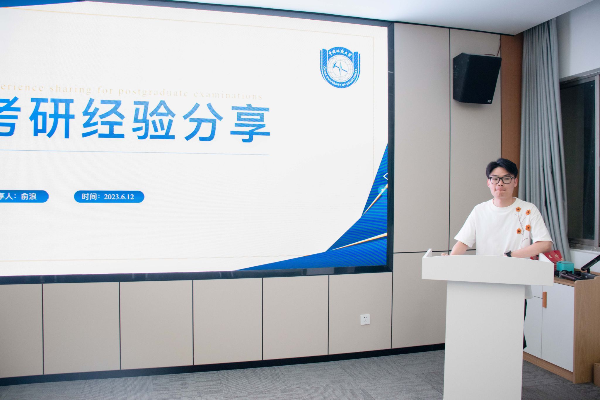 会上,四位毕业生代表将自己的经验化作满满的干货,让参会的同学们详尽地了解考研的相关事宜。首先,赵瑜从考研的科目展开分享,在学习方法部分着重强调了时间节点安排与报考信息的搜集等。接着,赵俣以“考研是什么”向同学们提问,引起了大家的思考,提出备考时要注意及时调整情绪,避免影响复习效率。此外,俞浪也强调了信息搜集的重要性,提醒大家在复习的同时也要注意强健体魄,保持良好的身体状态。丁子龙从自身的复习经历出发,讲述了自己备考过程中的心路历程,为同学们加油打气。