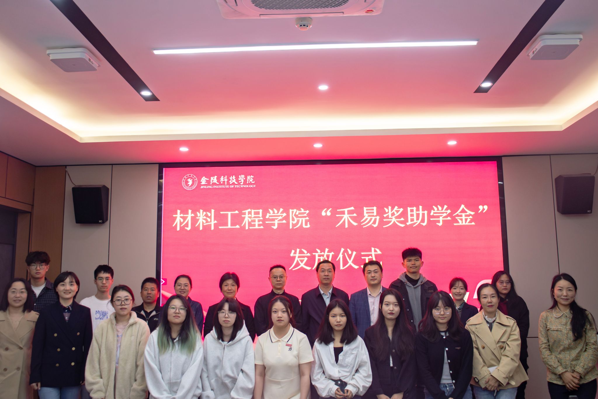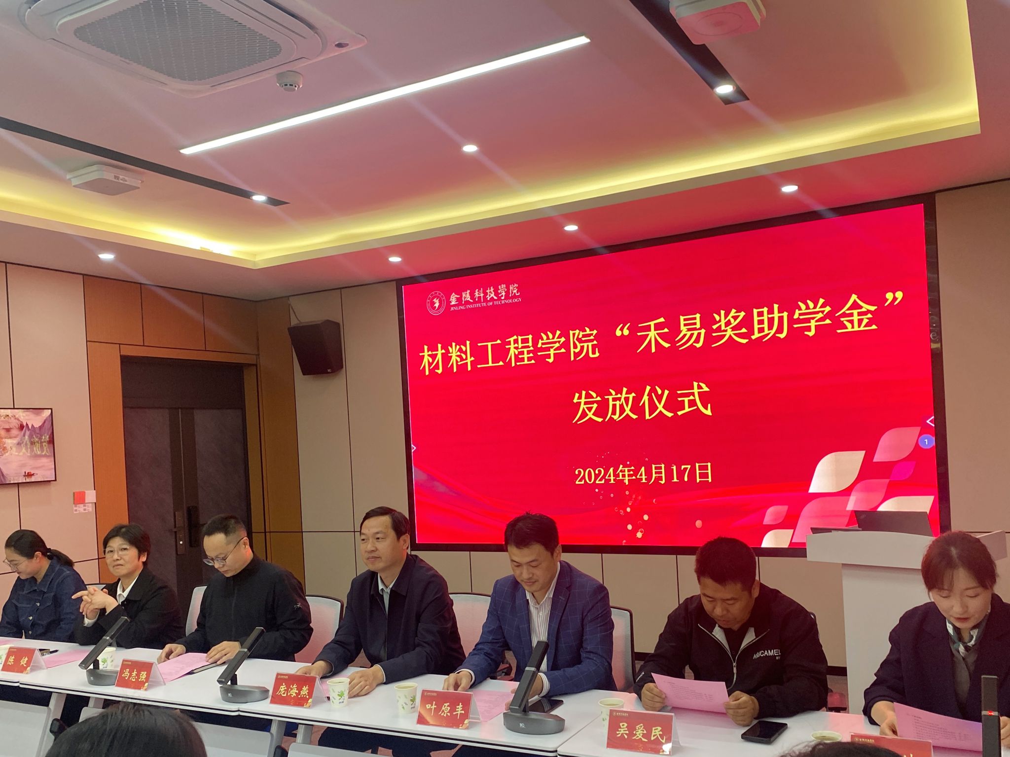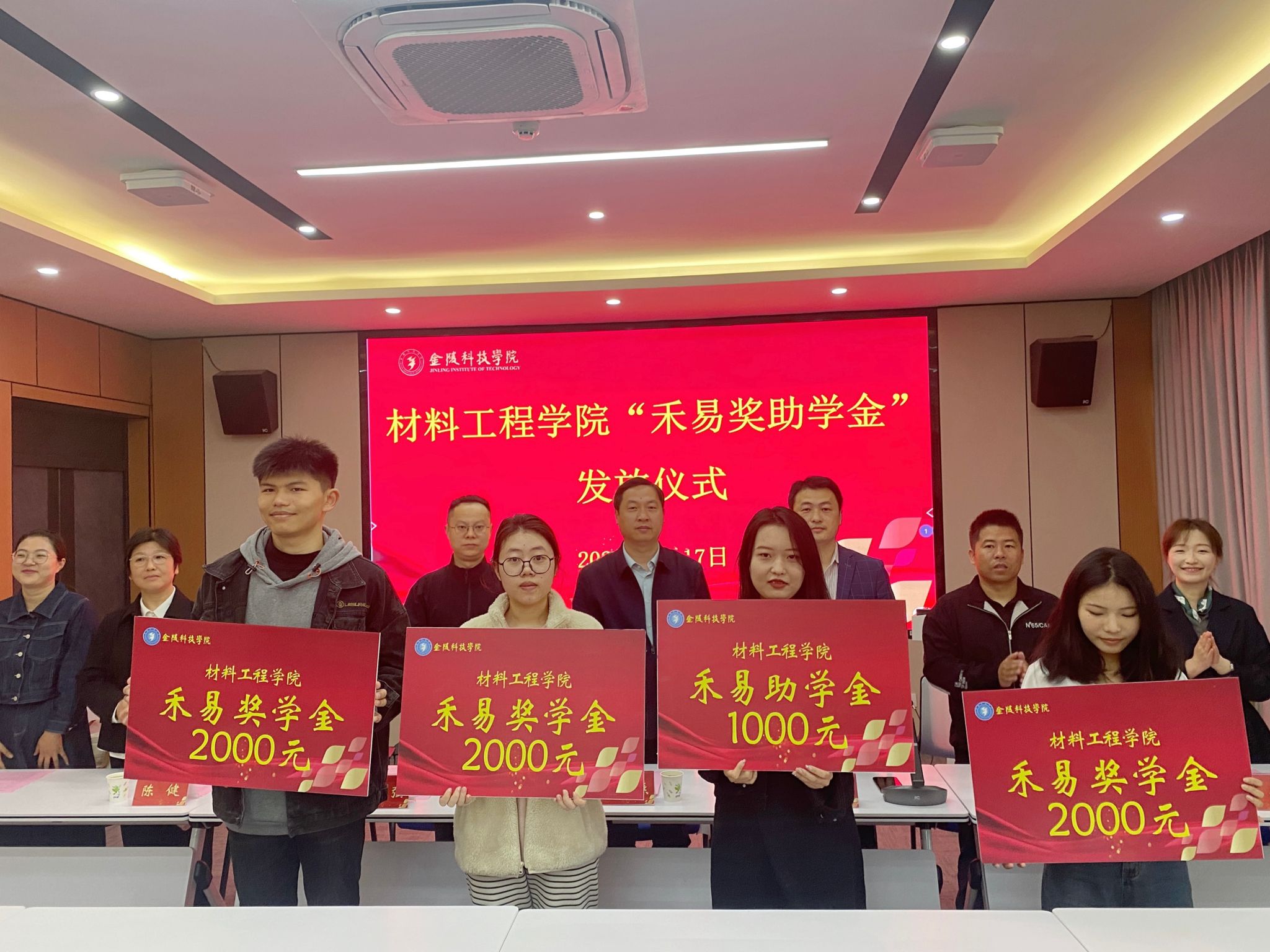在知行楼A506会议室举行“禾易奖助学金”发放仪式。江苏禾易企业管理集团有限公司董事长、av中文