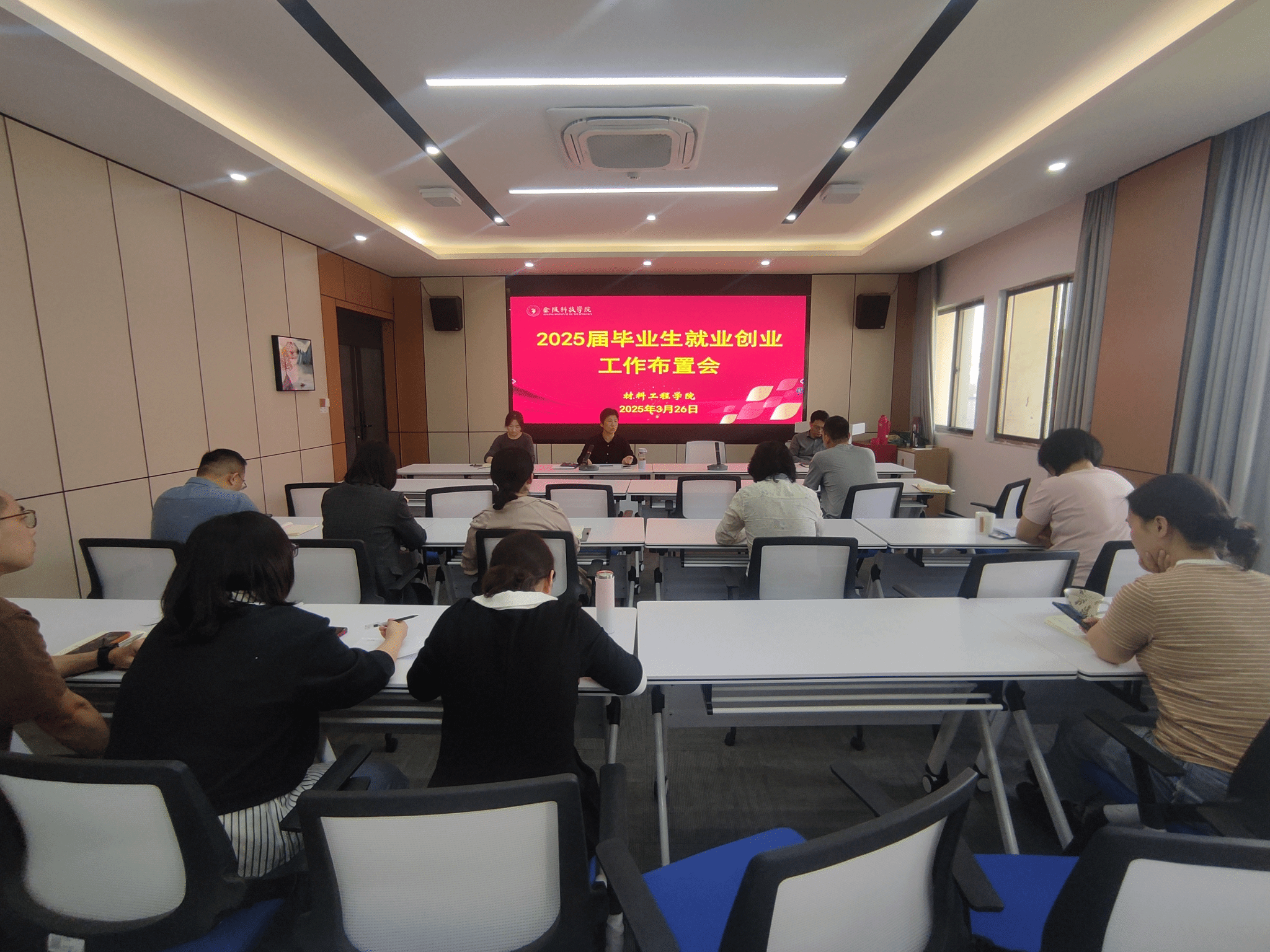 在知行楼 A506 会议室召开 2025 届毕业生就业创业工作布置会。学院党委书记陈健、副书记韩铖及副院长管航敏,各系支部书记、系主任,院就业干事及全体毕业班辅导员、班主任参加,共同为毕业生就业工作献计献策。会议由陈健书记主持。