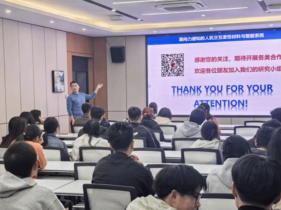 讲座中,他围绕柔性材料在人机交互智能系统中的应用,分享了领域前沿进展与研究成果,为师生带来了一场精彩的学术盛宴,助力学院在相关交叉领域的科研与人才培养工作。