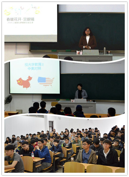 在5105教室举办“春暖花开赏眼镜”专题讲座,本次讲座特邀视光系王玲和许薇老师主讲,视光专业的部分同学参加了本次讲座。