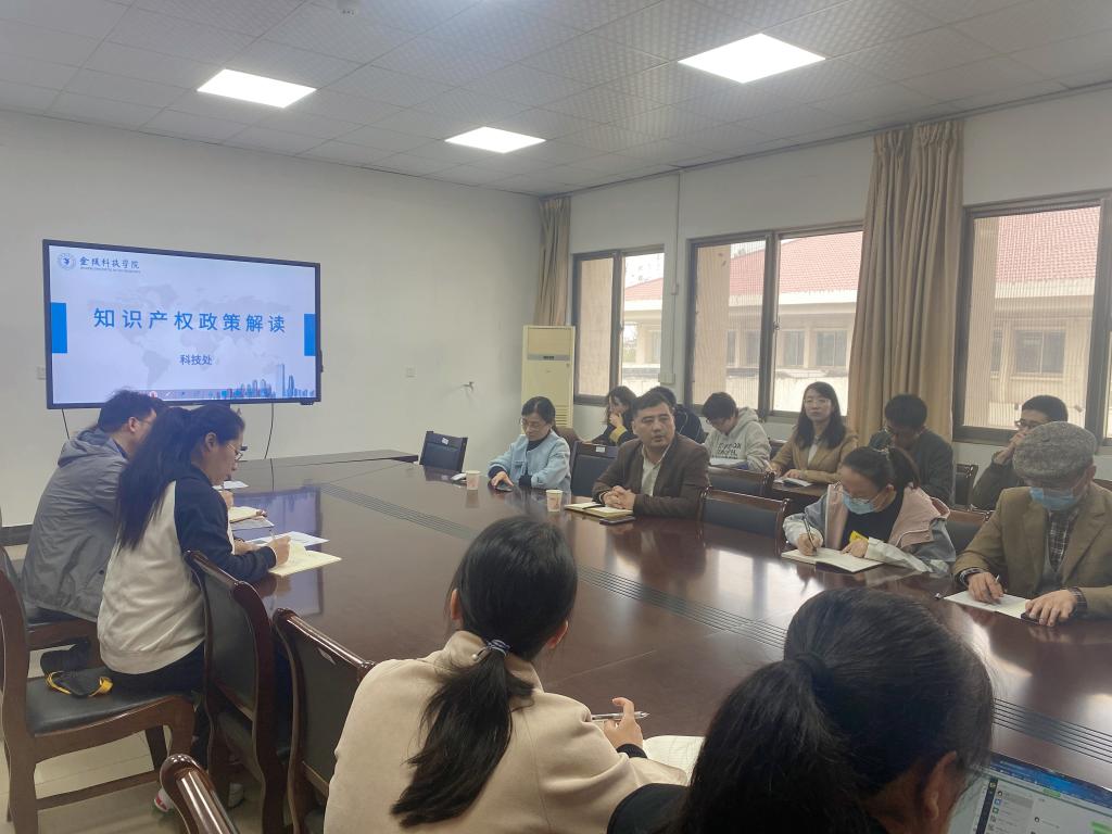 在工科楼A504会议室召开知识产权政策解读专题讲座。科技处副处长沈凌、科技处产学研合作及知识产权科副科长赵玮及av中文