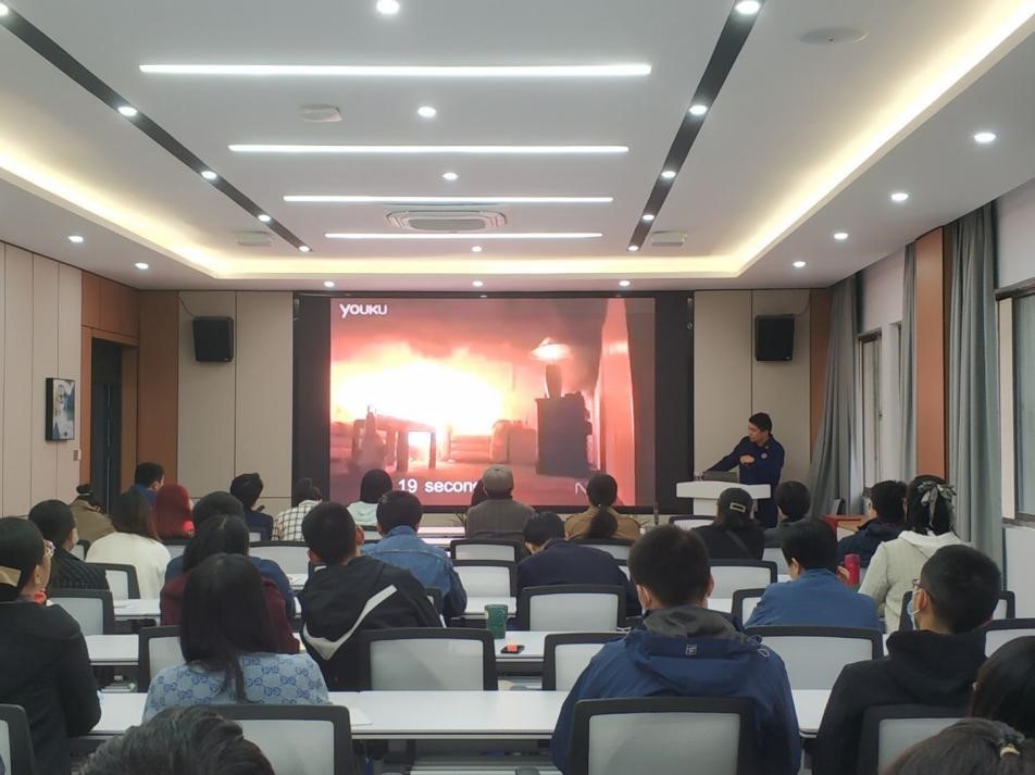 邀请江宁区消防救援大队火调员、资深消防培训宣传讲师严丹为我院60余名教职工开展消防安全培训会。