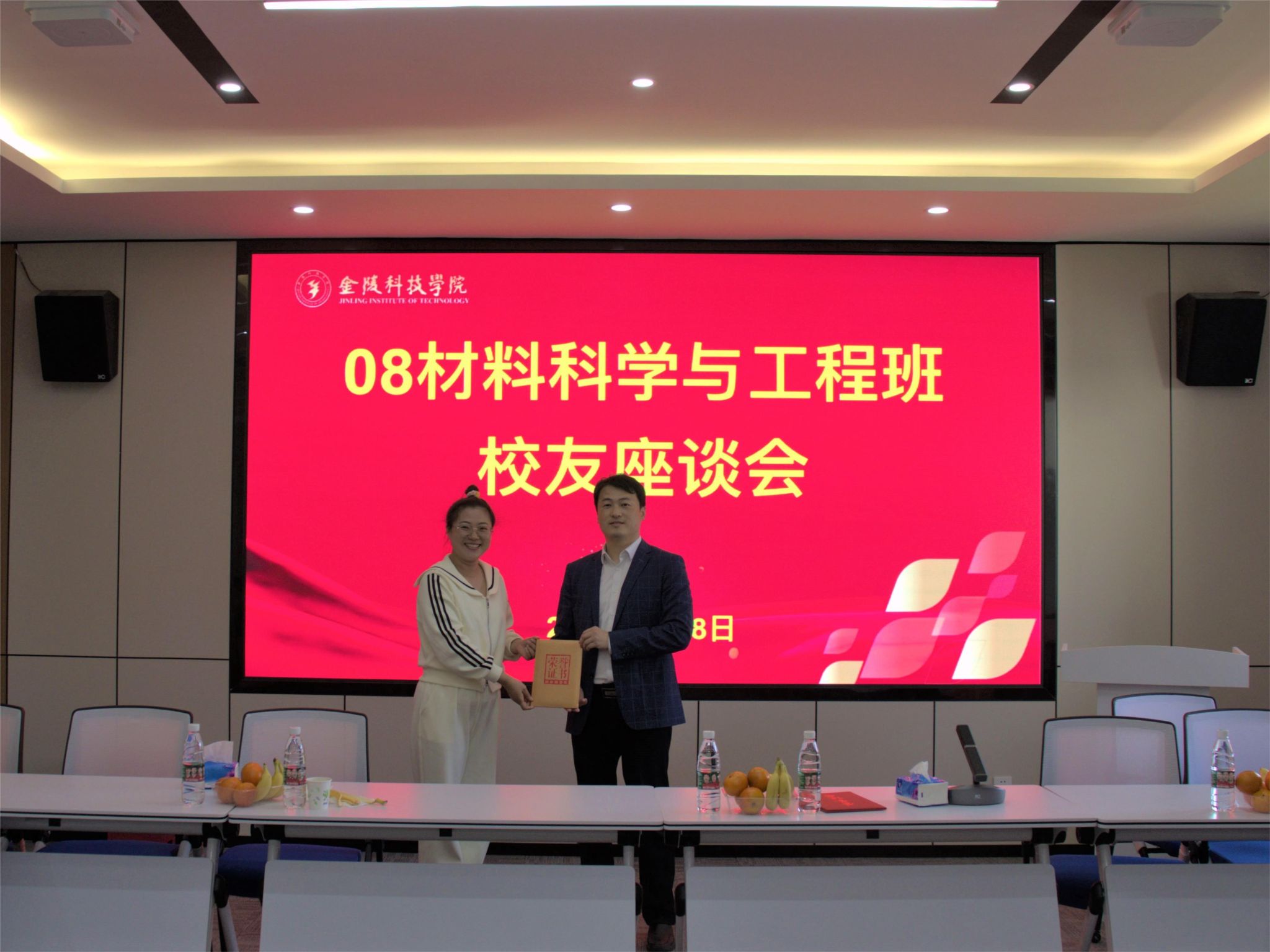 在叶书记的带领和辅导员华岚芳、王敏两位老师的陪同下,校友们参观了校史馆、实验室和校园。在校史馆,一张张照片、一段段影像让08级校友们仿佛置身于金科历史的长河,共同追忆往昔旧事,展望金科未来前景。在实验室,叶书记为大家介绍学院的高、精、尖仪器设备与新兴技术,让校友们切实感受到了学院十年间的巨大变化,并为学院的蓬勃发展由衷自豪。此次回校,08级材料科学与工程班校友捐赠景德镇花瓶一对,校友所在企业将设十万元奖助学金用以奖励、资助材料学院在校学子。叶书记为校友代表颁发捐赠证书,在花瓶下合影留念,本次08级校友座谈会圆满结束。