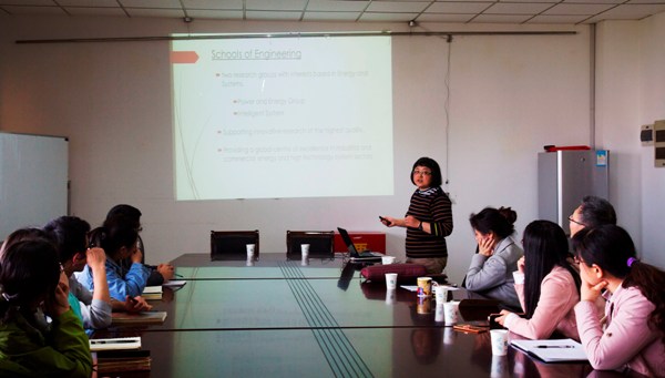 姚俊博士目前是林肯大学工程学院高级讲师,并与三菱电机欧洲研发中心(MERCE - UK)和西门子工业燃气轮机公司合作领导计算工程研究活动。报告会上,姚俊博士向在场的师生介绍了林肯大学的布局及院系分布,讲解了她所属研究中心的研究方向,主要研究低碳发动机、气能发动机、储能装置、气体压缩储存等一系列问题研究;分析了未来的工业发展前景与方向,强调了数据和计算机的重要性。最后,姚博士为大家详细讲解了沸石燃料电池催化剂的特点以及对甲醛和甲醇的效率,给教师和学生们留下深刻的印象,赢来阵阵掌声。