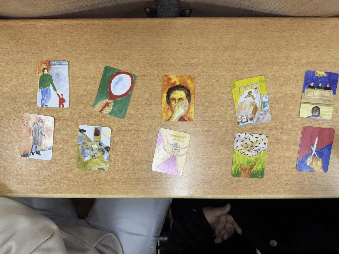 活动现场秩序井然,暖意融融。大家在主持人对活动材料的温柔解读中,深刻领会到活动背后“尊重差异、传递善意”的初衷。趣味答题环节率先点燃现场氛围,一道道精心设计的题目既检验了大家对自闭症的初始认知,也激发了主动探索的热情;随后的PPT讲解环节,系统梳理了自闭症的成因、特征及常见误区,为参与者搭建起了认知框架。接着,Oh卡心理游戏让现场氛围达到高潮。参与者随机抽取卡牌,结合自身经历分享内心感受:有人以“奔跑的人”与“彩虹”为引,抒发备考路上的坚持与憧憬;有人借卡牌图案倾诉生活中的烦恼,收获了伙伴们的真诚鼓励与暖心建议。