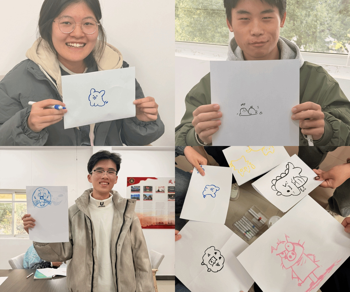 活动伊始,“滚雪球”自我介绍环节迅速拉近了彼此的心理距离,原本陌生的面孔逐渐变得熟悉,现场互动的热情也不断升温。“心随‘萌’动——画出我的动物画像”环节则让新生们开启了自我探索的旅程,有的同学画了慵懒的小猫,认为自己随性淡然;有的同学画了灵动的小兔子,希望像小兔一样保持敏锐的感知力……一幅幅充满创意的画作,成为了新生们表达自我的独特载体。