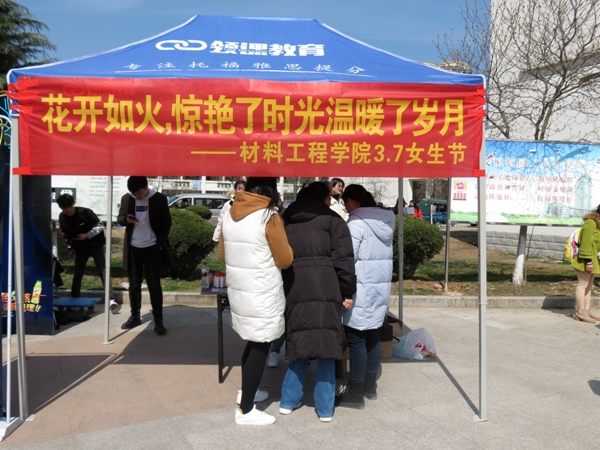 于3月7日上午10点至下午5点在北区食堂门口举办以“花开如火,惊艳了时光温暖了岁月”为主题的全校性女生节公益活动。