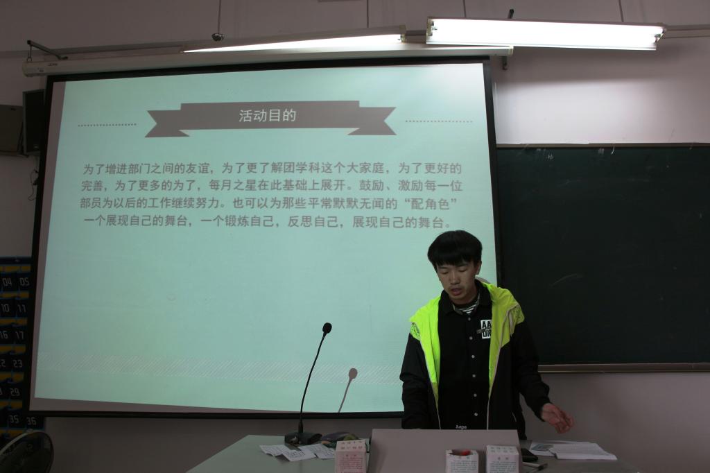 本次月之星活动的开展,不但增进了部门间的友谊,更使团学科的干事们能够更加积极有效的完成任务,让各部门之间配合的更紧密有序。