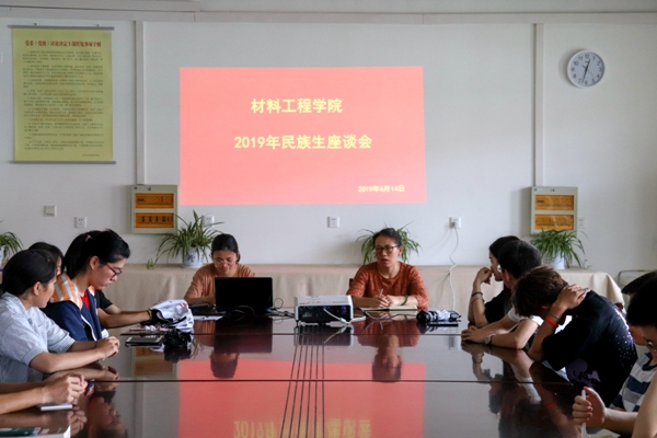 于2019年6月14日中午12:30在工科楼会议室顺利举办2019年民族生座谈会。材料工程学院党委副书记陈智慧出席本次活动,辅导员张瑛鹦主持, 全体2016级、2017级、2018级少数民族同学参加了本次座谈会。