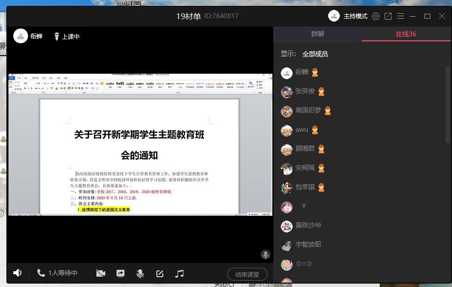 所有班级采取线上、线下形式开展了新学期学生主题班会。