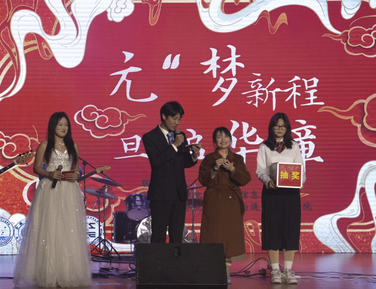 、电子信息工程学院、网络与通信工程学院、网络安全学院联办的以“‘元’梦新程,‘旦’启华章”为主题的元旦晚会在大学生活动中心隆重举行。联办各学院院领导、辅导员、教师代表及1200余名学生欢聚一堂,共同迎接充满希望与梦想的新一年。