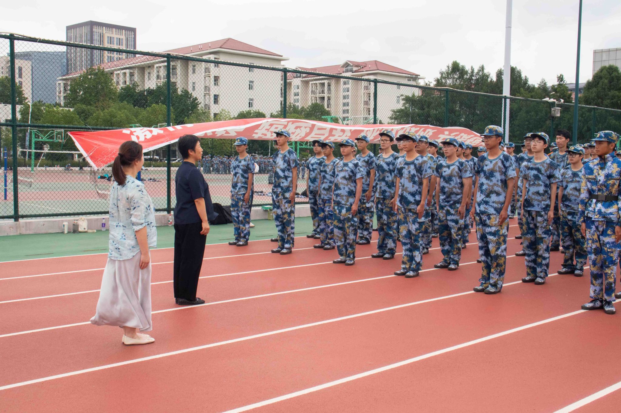 陈健书记在慰问中鼓励同学们积极迎接挑战,将军训作为磨炼自我、培养纪律的重要机会,不断强化身体素质和心理韧性,为今后的大学生活打下坚实基础。韩铖副书记希望同学们继续保持高昂士气,互帮互助、共同进步,把军训中形成的优良作风转化为日常成长的持续动力。