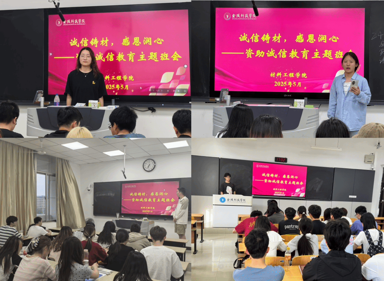 组织各班级开展了“诚信铸材,感恩润心”资助诚信教育主题班会。活动通过多种形式引导学生树立诚信观念,厚植感恩情怀,培养新时代材料学子的责任担当。