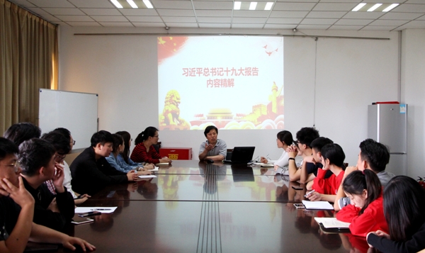 为让同学们深刻领悟十九大精神,av中文 于2018年4月9日在学院会议室举办“十九大精神面对面”专题报告会。特邀av中文 退休教师王淮庆为大家讲解,学院党总支副书记陈智慧出席会议,部分学生代表参加。